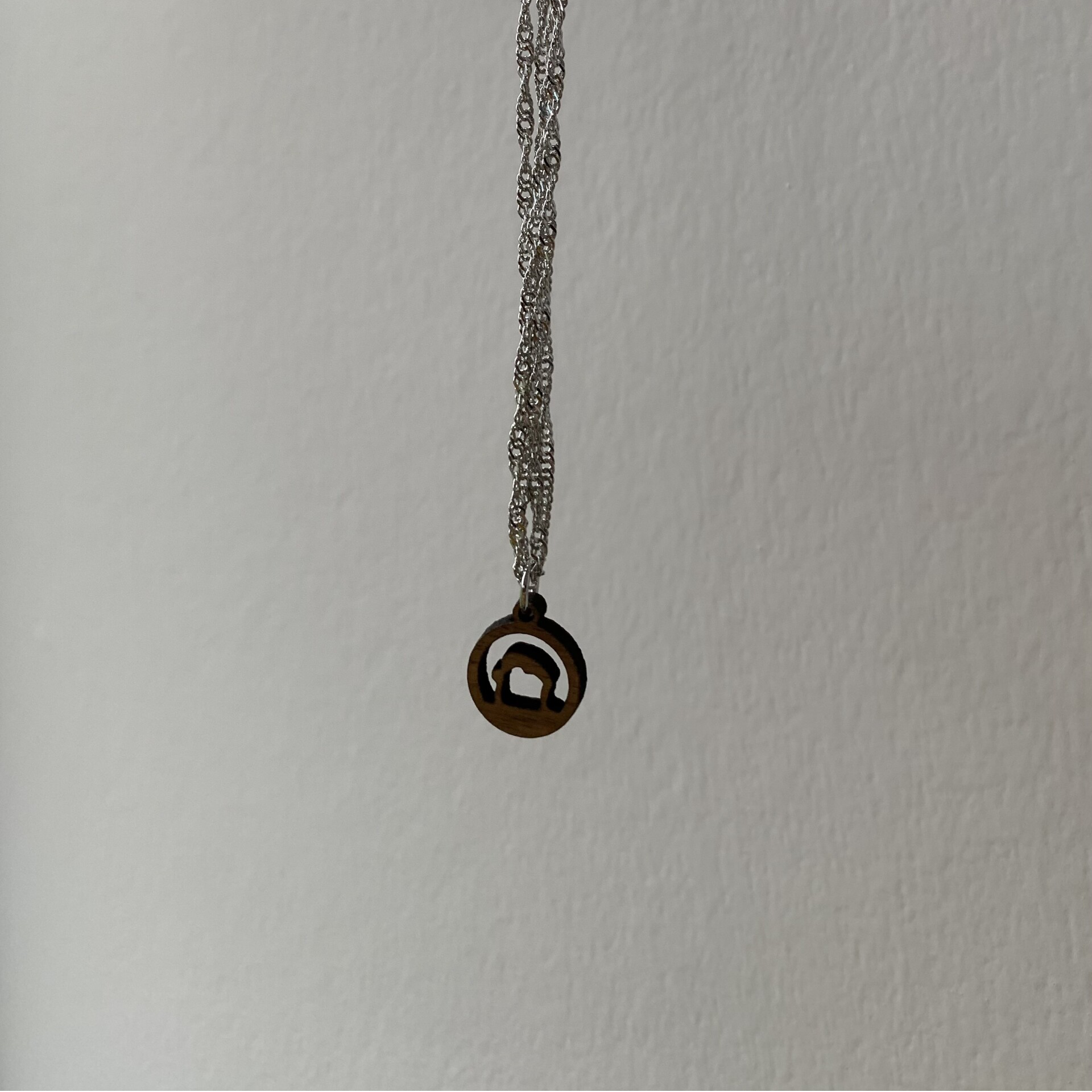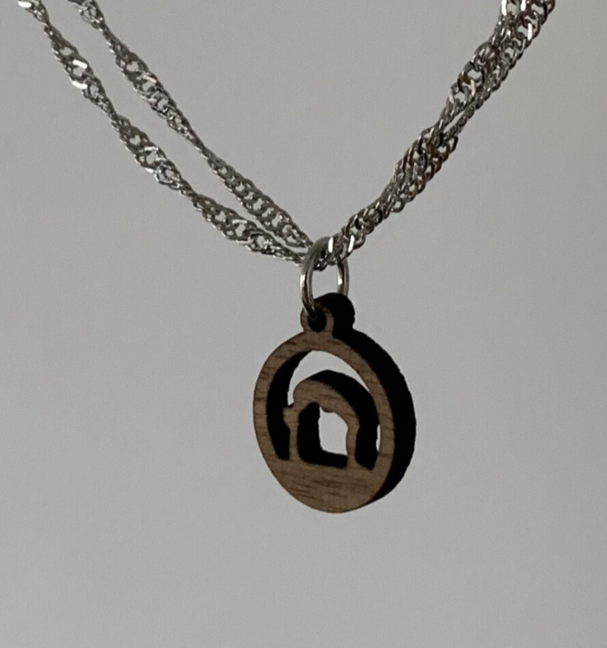 Deze zilverkleurige ketting met houten medaillon herinnert je aan een mogelijke opkikker in vermoeiende momenten. De volledige brughouding 'Setu Bandha Sarvangasana' zoals deze is uitgebeeld vraagt kracht in de armen, traint de been- en rugspieren en opent je hart. Deze houding is ook uit te voeren in meerdere eenvoudigere poses, bv. waarbij de schouders, armen en handen contact blijven maken met de mat.